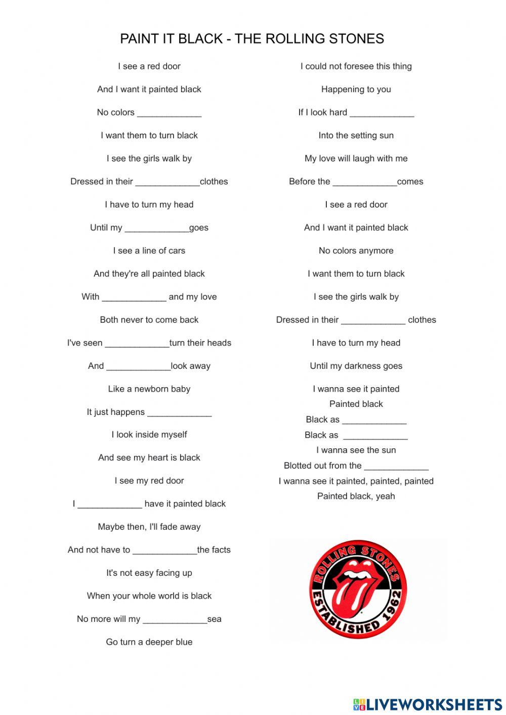 Paint It Black Worksheet Live Worksheets